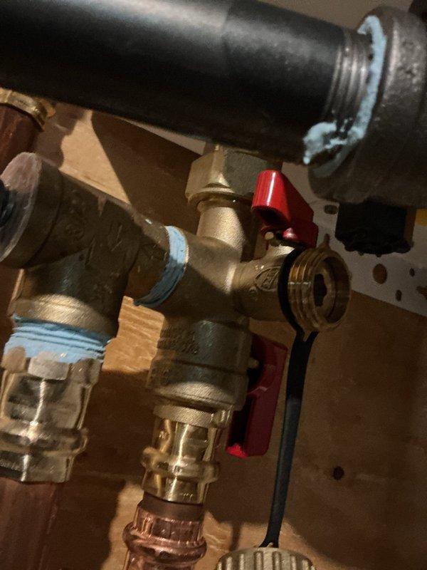 Responded to callback for leaking tankless water heater installation. Upon inspection, identified water dripping from brass valve assembly and pipe connections beneath the unit. Tightened threaded fittings, inspected pressure relief valve connections, and verified all Teflon tape applications were properly sealed. Tested system operation and confirmed leak was resolved with no further dripping detected.