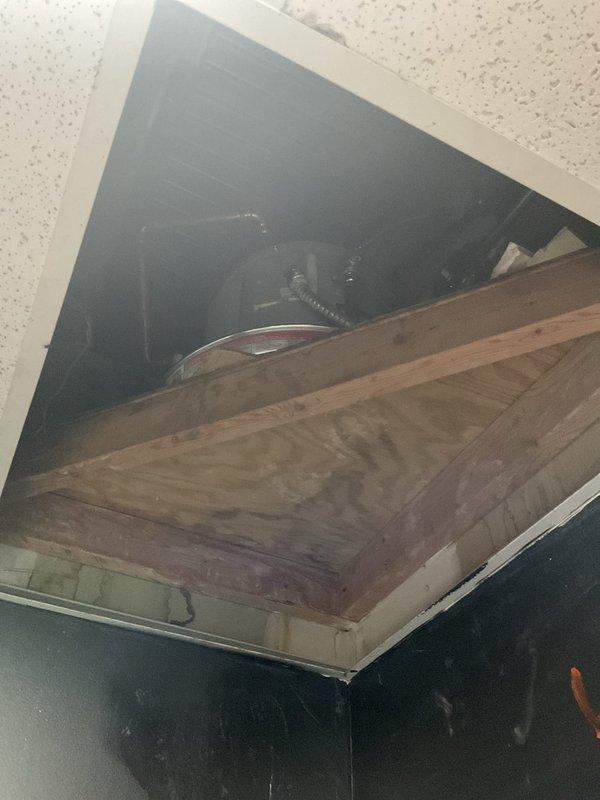 Inspected 6.6 gallon electric hot water tank located in ceiling space; accessed via ceiling hatch. Performed assessment for replacement and noted installation will require step ladder access. Quote pending; customer Kyle to be contacted with replacement estimate.