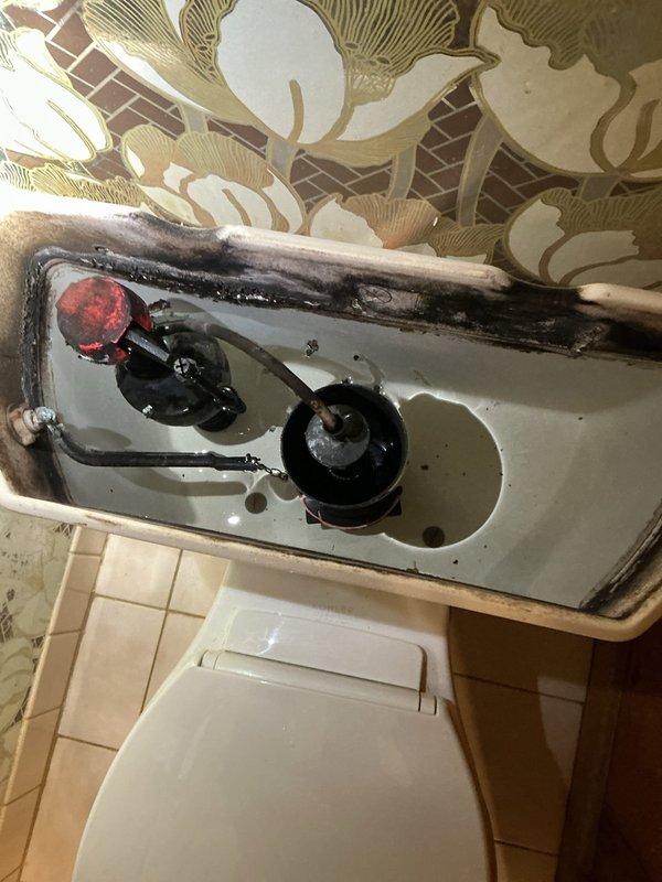 Replaced worn flapper valve and adjusted fill valve in older model toilet to resolve continuous running issue. Cleaned mineral deposits from tank components and verified proper water level after repair. System now functioning correctly with complete cycle testing performed.