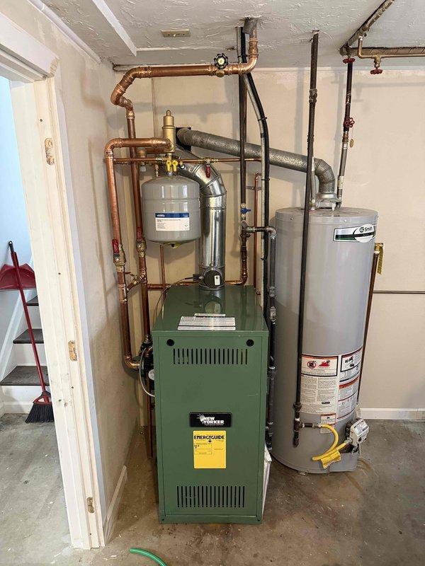 Successfully replaced existing hot water boiler with new Weil-McLain unit, including installation of complete copper piping network and proper connection to existing water heater system. All components were professionally installed with appropriate valves and fittings, ensuring optimal system functionality and efficiency.
