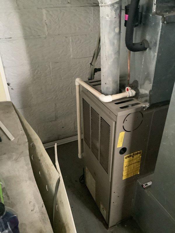 Performed annual furnace tune-up service, including inspection and cleaning of drain components. Accessed unit at rear of property and utilized specialized tools for maintenance procedures. System was restored to proper working condition with all components verified operational.
