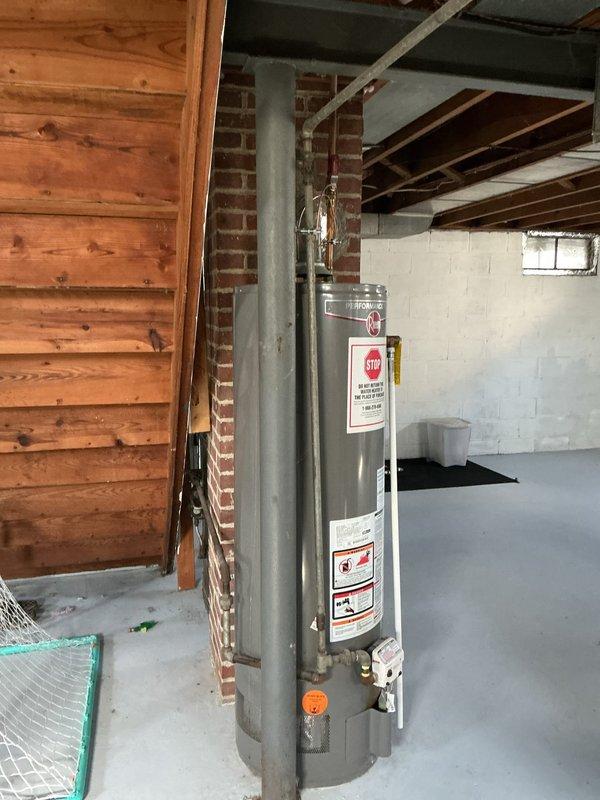 Completed standard tanked water heater flush and fill service on residential gas water heater unit located in basement utility area. Drained sediment buildup from tank bottom, flushed system with fresh water until discharge ran clear, refilled tank, verified proper operation of temperature/pressure relief valve, and confirmed all connections remained secure with no leaks detected upon completion.