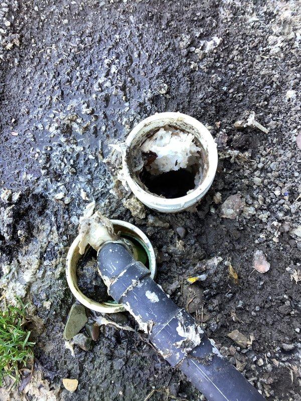 Responded to commercial property with reported main drain clog. Upon inspection, located and exposed the main drain cleanout access point which showed signs of deterioration at the PVC junction. Successfully cleared blockage and restored proper drainage function before customer's evening event.