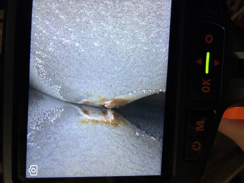 Performed diagnostic inspection on 20-year-old residential furnace after customer reported operational issues. Visual inspection with camera equipment revealed significant corrosion and deterioration at critical junction points. Documented structural damage that indicates end-of-life conditions requiring replacement consideration.