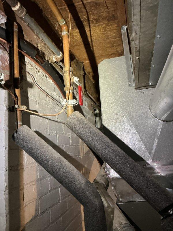 Responded to no heat call following fire department shutdown due to flooding incident. Performed comprehensive safety inspection of furnace and associated components to verify system integrity before restart. Inspected refrigerant lines, electrical connections, and blower assembly for water damage or compromised components. Blower wheel showed normal dust accumulation consistent with regular operation. All refrigerant lines, insulation, and connections found secure with no visible damage from flood event. Verified system safe for operation and provided clearance to restore heating service.