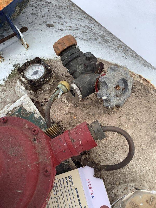 Responded to no-heat call following propane delivery. Diagnostic inspection revealed dirt accumulation and corrosion on pressure regulator assembly. Cleaned regulator components and confirmed proper gas pressure restoration, returning system to normal operation with heat output restored.