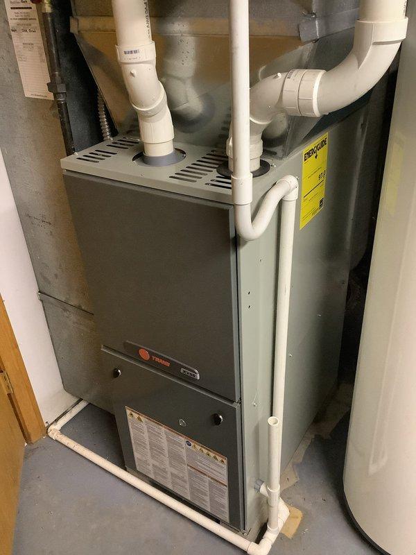 Performed routine preventative maintenance on Trane residential furnace system. Completed visual inspection of unit, including exhaust/intake PVC piping and condensate drainage system with trap. All components appear to be functioning within normal parameters with no immediate concerns noted.
