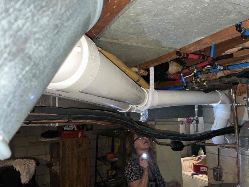Conducted thorough generator installation assessment in basement utility area with complex plumbing and electrical systems. Inspected existing infrastructure including PVC drainage, PEX water lines, and electrical wiring to determine optimal generator placement and connection requirements. Documented site conditions with detailed photos for proper equipment specification and installation planning.