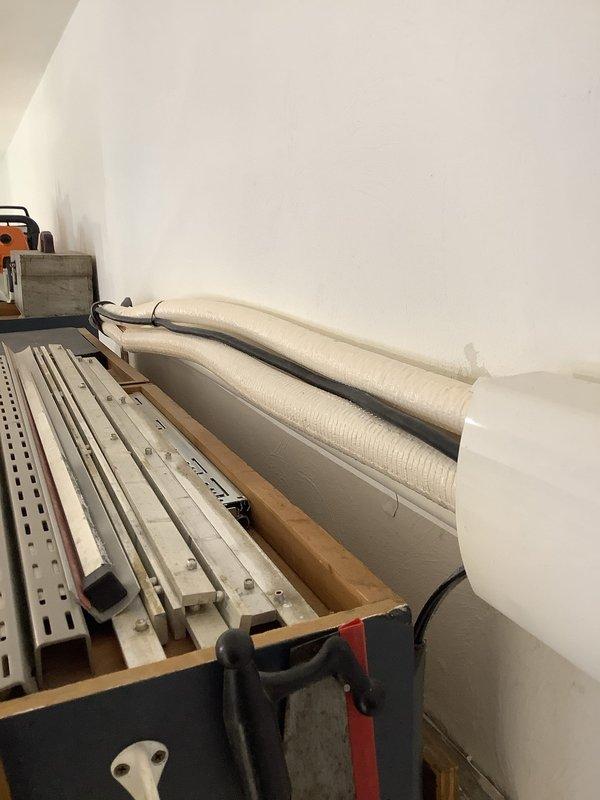 Inspected mini-split system and identified refrigerant lines left uncovered during previous installation. Applied proper insulation to exposed refrigerant lines to prevent energy loss and condensation issues. System was not operational upon arrival as minimum voltage protection (MVP) was not present.