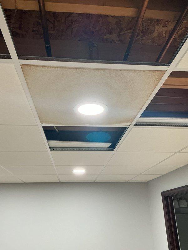 Responded to water leak service call for a 16-year-old home. Located and repaired leaking pipe within the basement's drop ceiling system, which had caused visible water damage to surrounding ceiling tiles. Replaced affected section of pipe and verified system integrity with pressure test before restoring ceiling access panels.
