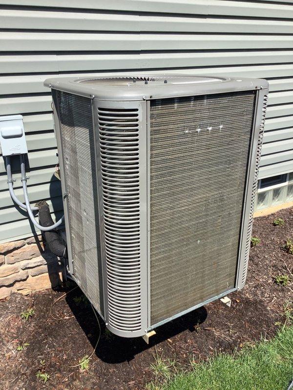 Completed MVP air conditioning maintenance on residential outdoor condenser unit. Performed comprehensive system inspection, cleaned condenser coils and grilles, checked refrigerant levels, tested electrical connections and disconnect box, verified proper airflow through louvers, and confirmed unit operation. System is functioning within normal parameters with no issues identified.