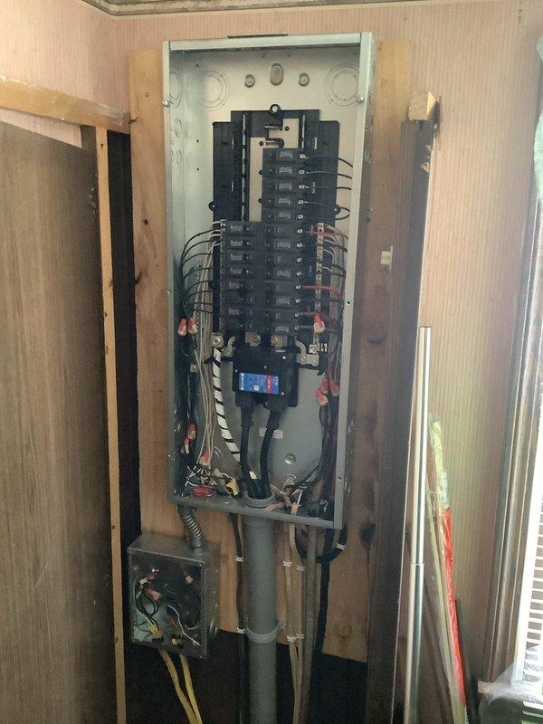 Replaced existing electrical panel with new 200A panel in interior closet of mobile home. Coordinated with homeowner to remove overhead shelving to provide adequate working clearance for code-compliant installation. Successfully installed panel with proper circuit breaker configuration, completed all electrical connections, and verified system operation upon energization.