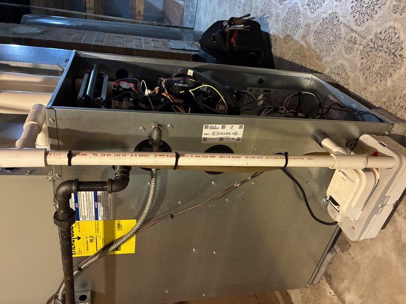 Completed comprehensive AC tune-up service on residential HVAC system. Performed visual inspection of control boards, electrical connections, and wiring harnesses within the unit, verified proper operation of blower motor assembly, and documented system condition with interior component photography. All components found in satisfactory operating condition with normal wear patterns observed.