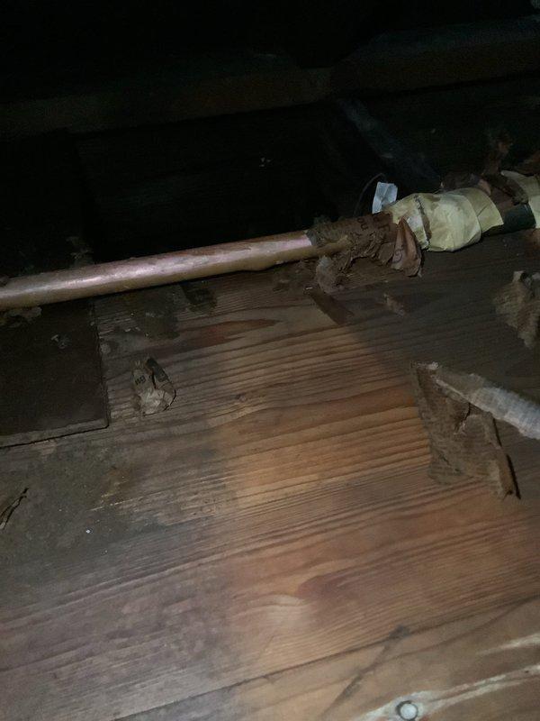 Responded to emergency burst pipe call. Located copper pipe with significant joint deterioration in crawlspace area. Repaired compromised fitting, applied proper sealant, and restored water service after confirming no leakage at connection point. Water damage to surrounding wooden structural elements was documented and homeowner advised of potential need for future structural assessment.
