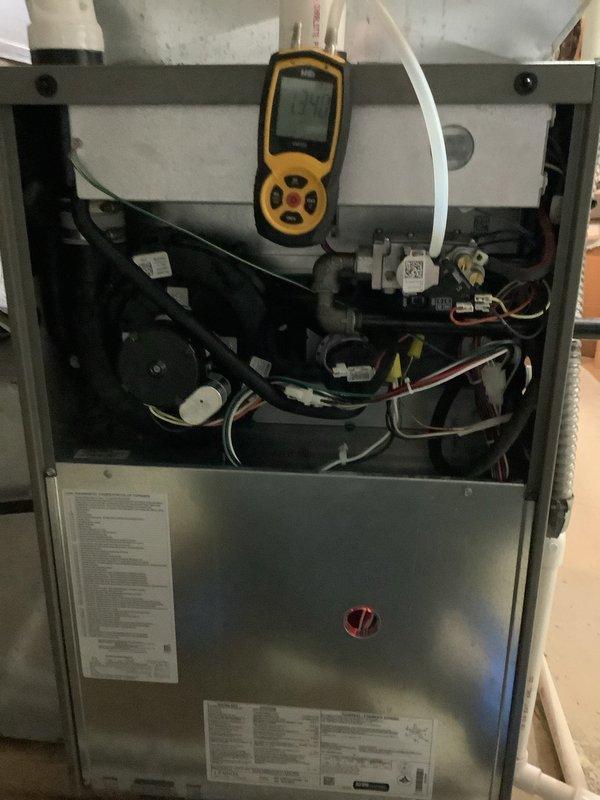 Completed comprehensive furnace tune-up and seasonal maintenance inspection. Performed electrical diagnostics using clamp meter to verify amp draw and system performance, inspected gas piping connections and unions for proper sealing and corrosion, and documented all findings with photographic evidence. All components found operating within manufacturer specifications.