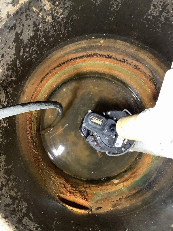 Responded to service call for non-operational sump pump system. Upon inspection, found existing pump in basin with significant mineral deposits, rust-colored staining, and corrosion throughout the pit. Standing water present indicated pump failure. Documented condition with photos showing deteriorated basin with concentric ring staining and compromised discharge piping. Coordinated with technical team for pump replacement evaluation and scheduling.