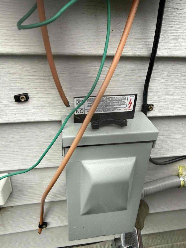 Responded to no cooling call on system less than 10 years old following recent maintenance visit. Upon arrival, inspected outdoor unit and electrical disconnect box, documenting exterior components and wiring connections. Attempted multiple contact with customer to discuss findings and determine if issue was unrelated to previous maintenance service.