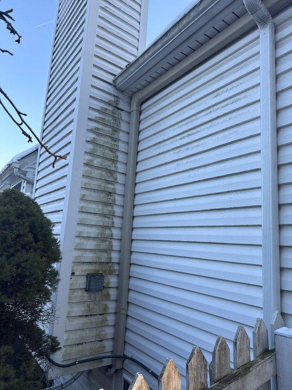 Conducted follow-up appointment for 2-head mini split system installation. Documented exterior wall condition showing significant moisture damage and mold/mildew staining on vinyl siding where unit is mounted. Job currently on hold per customer request due to driveway icing issues; customer will contact to reschedule completion.