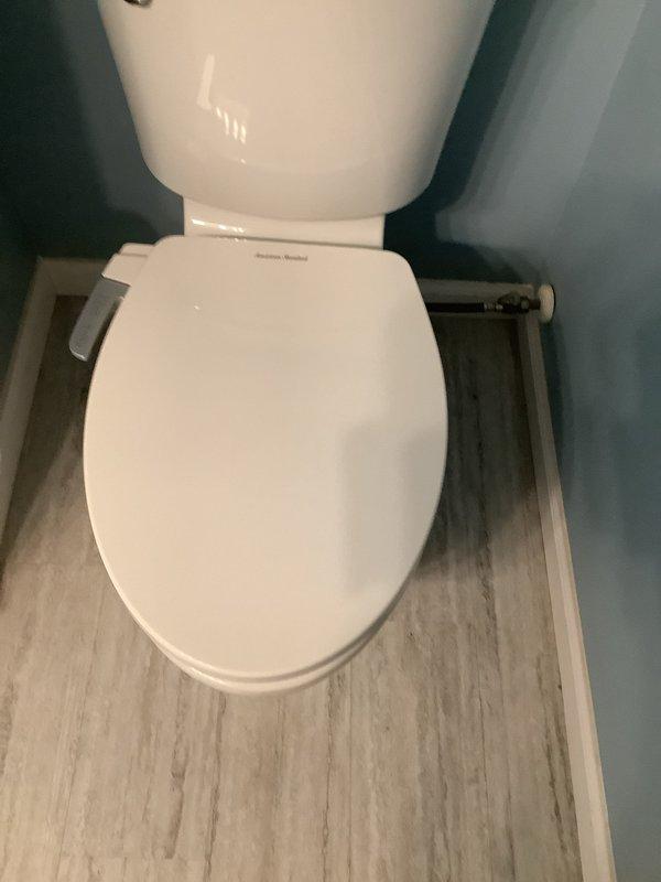 Inspected customer's existing standard height Mansfield toilet and confirmed requirements for replacement with a taller model that includes bidet functionality. Documented current installation with photos. Parts have been ordered for shop delivery and installation pending arrival of new toilet unit.