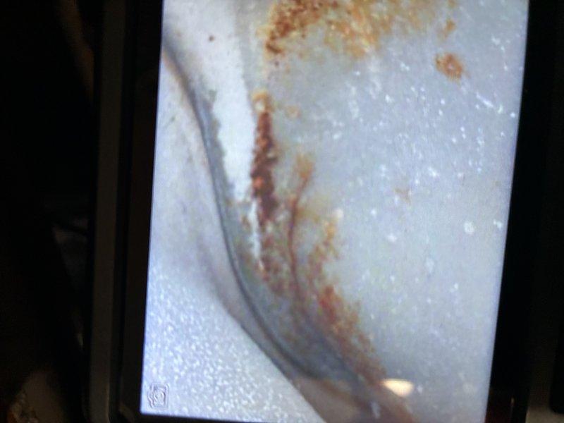 Performed diagnostic inspection on Navien tankless water heater producing insufficient hot water in 23-year-old residence. Examined internal components including condensing heat exchanger, valves, and connection points. Identified mineral buildup and partial blockage in heat exchanger unit affecting performance. Cleaned scale deposits and restored proper water temperature output.