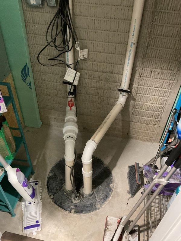 Responded to MVP customer's service call regarding blocked floor drain. Inspected basement utility area plumbing system with focus on PVC drain pipes and connections. Cleared obstruction from floor drain and verified proper drainage function. Checked grinder pump operation and confirmed system working correctly after service.
