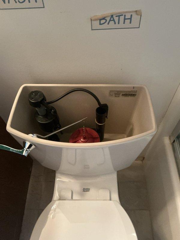 Responded to a service call for toilet leak repair in a 25-year-old residence. Upon inspection of the tank components, diagnosed and replaced faulty flush valve assembly causing water leakage. Verified proper water level and flush operation before completing service.