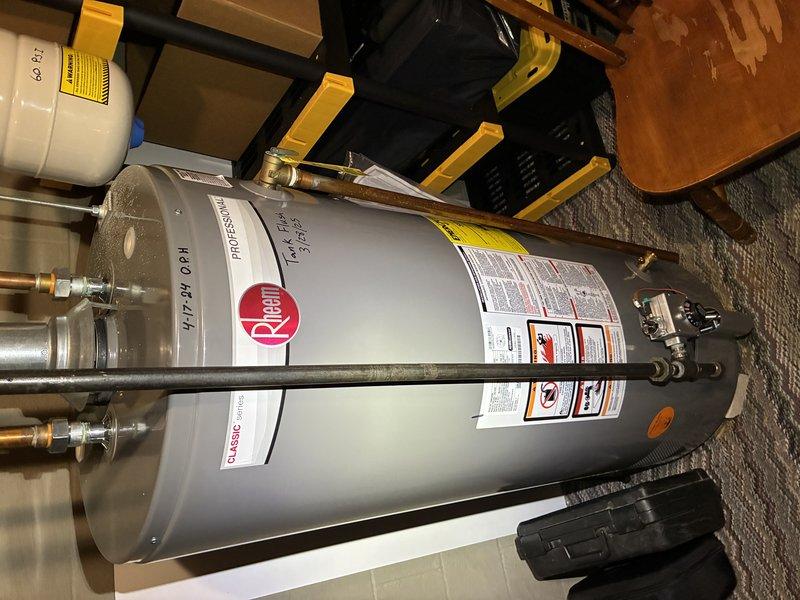 Performed scheduled maintenance on Rheem water heating system. Inspected unit for operational safety, checked connections and pipe fittings for leaks. System is functioning properly with no issues identified at this time.